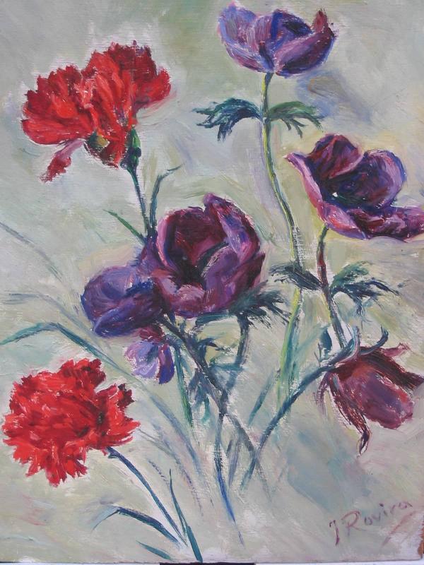 Carnations and purple flowers