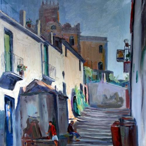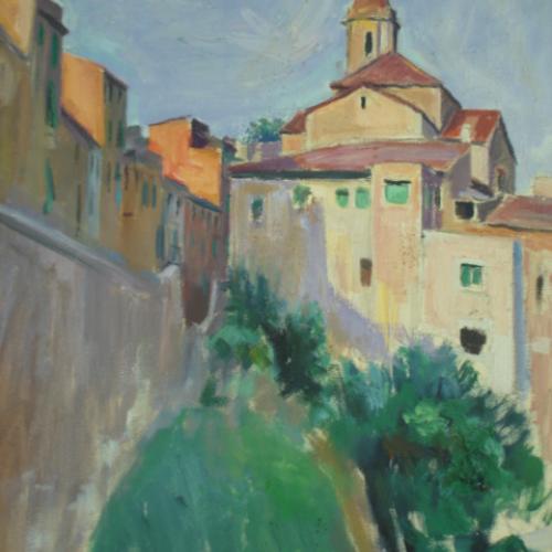 Village with church, impressionist
