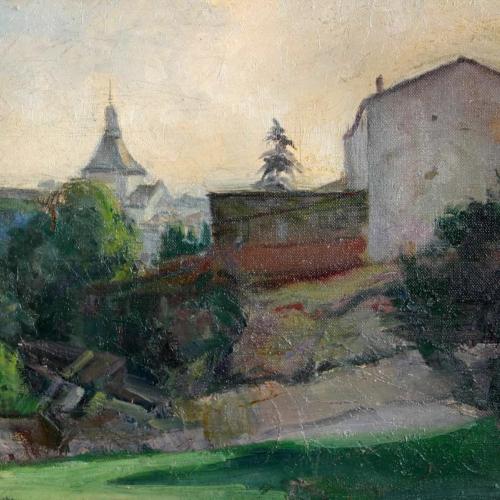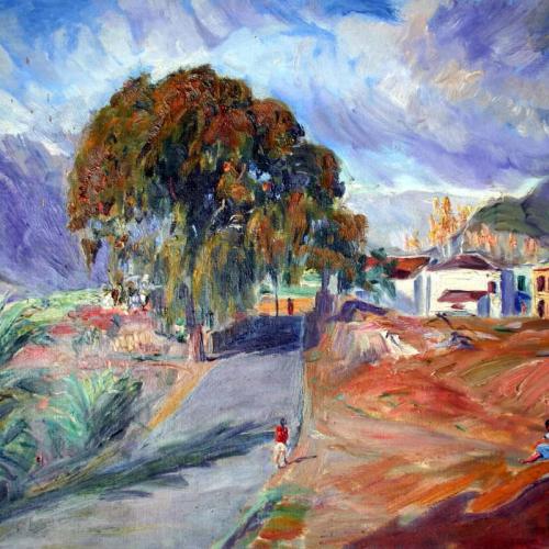 Tree with houses and bell tower